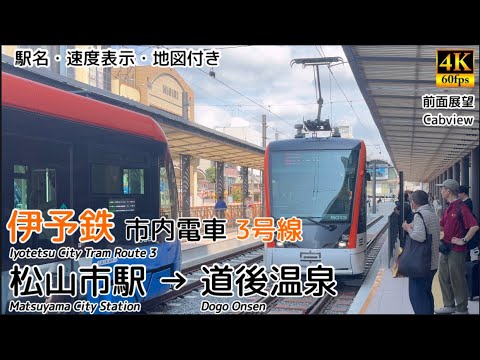 伊予鉄道 松山市内電車3号線前面展望動画です。