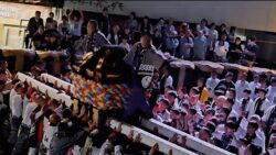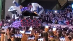 【松山秋祭り2025道後宵宮】溝辺町大神輿 vs 北小唐人大神輿 道後鉢合わせ喧嘩神輿