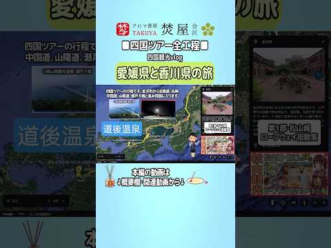 【四国ツアーの全工程】愛媛県・松山城・ロープウェイ街・道後温泉・香川県のうどん、大江戸温泉物語、金刀比羅宮