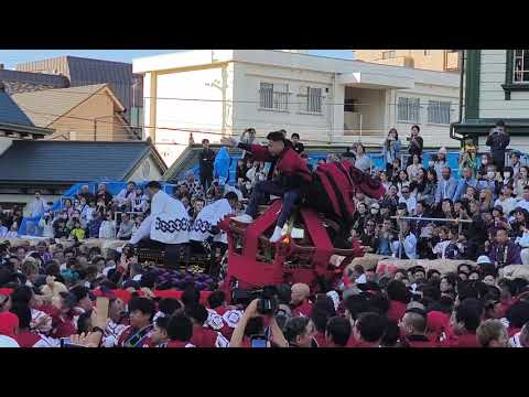 松山秋祭り2025道後本宮 小唐人大神輿 vs 北小唐人大神輿 道後鉢合わせ喧嘩神輿 道後温泉 X Facebook はてブ Pocket LINE 2025.10.08 2025年(令和7年)10月7日に愛媛県松山市の道後温泉駅前で行われた松山秋祭り2025本宮道後鉢合わせ喧嘩神輿の様子です。