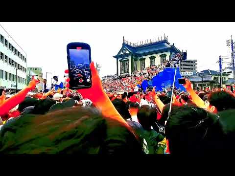 松山道後秋祭り2025宵宮⭐️鉢合わせ⭐️小唐人大神輿対築山大神輿 道後温泉 X Facebook はてブ Pocket LINE 2025.10.07 松山秋祭り#道後#祭り#鉢合わせ#神輿 2025年10月5日道後温泉駅前にて.