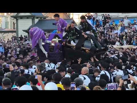 松山秋祭り2025道後本宮 道後村大神輿 vs 北小唐人大神輿 道後鉢合わせ喧嘩神輿 道後温泉 X Facebook はてブ Pocket LINE 2025.10.11 2025年(令和7年)10月7日に愛媛県松山市の道後温泉駅前で行われた松山秋祭り2025本宮道後鉢合わせ喧嘩神輿の様子です。
